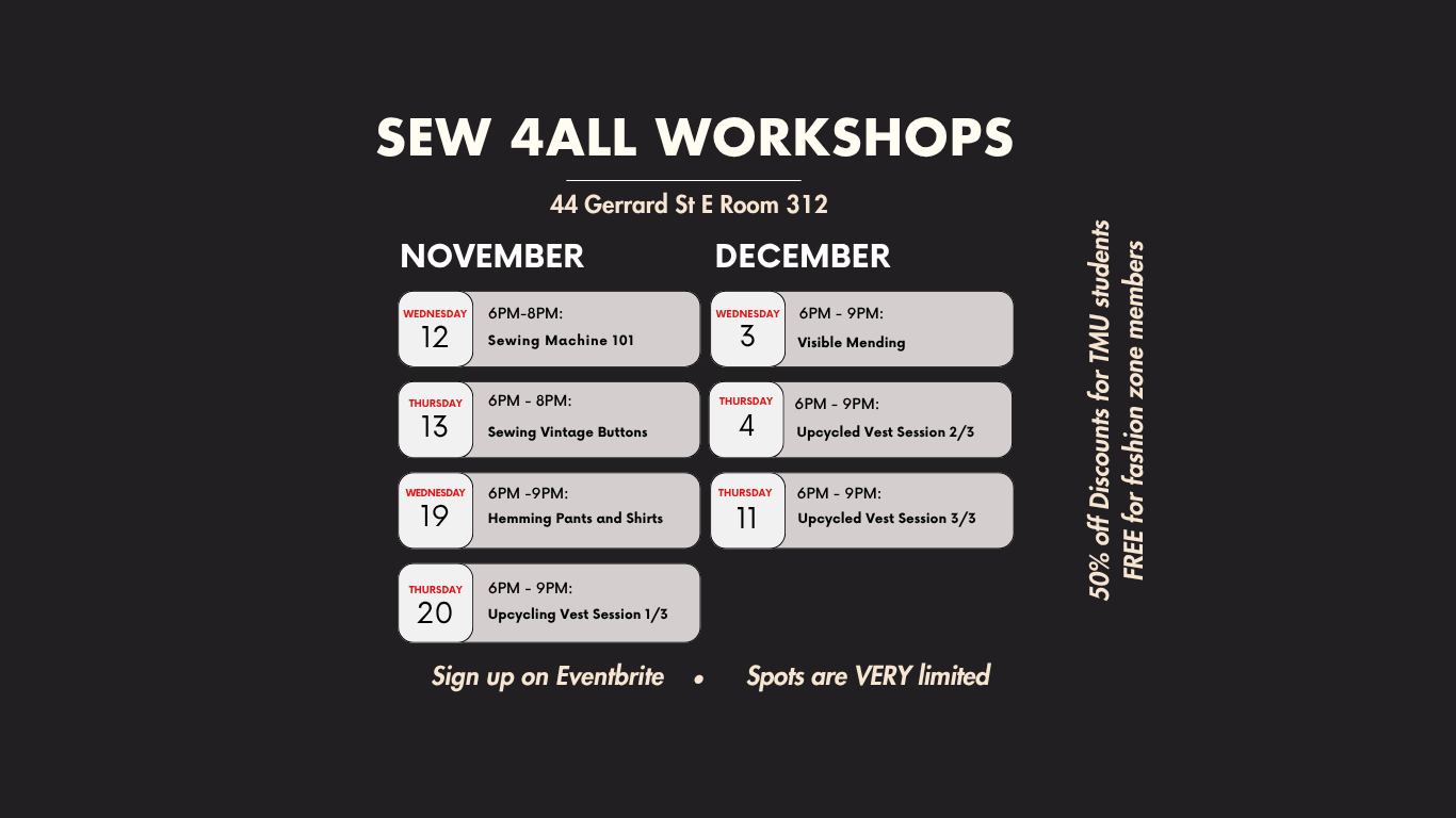 SEWING WORKSHOP REGISTRATIONS NOW OPEN!