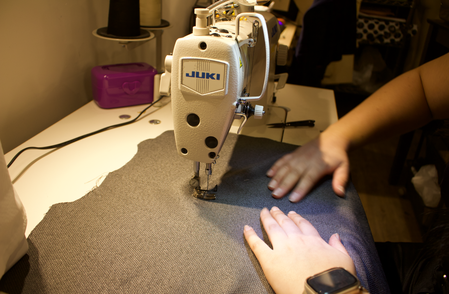 Our process starts by diving into our bins of old garments and thrifted materials, transforming them through upcycling into something new