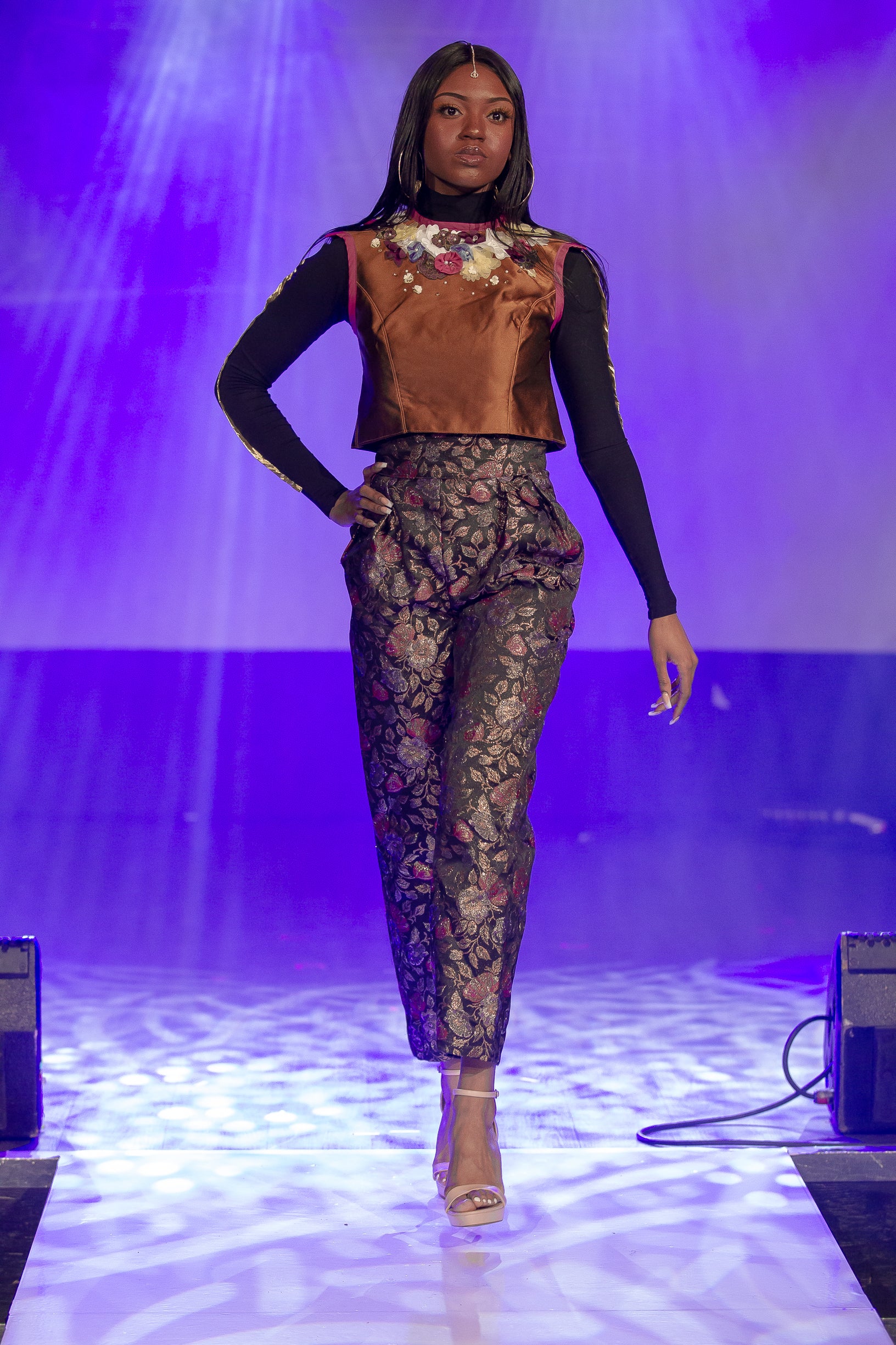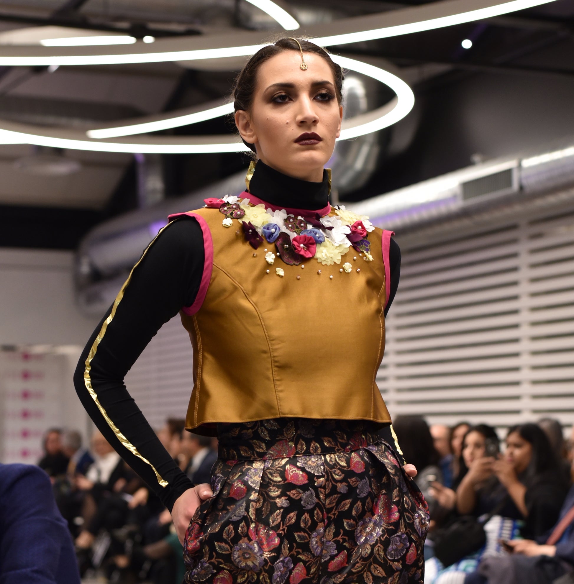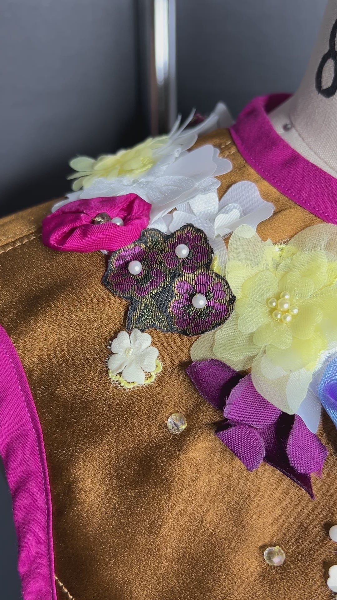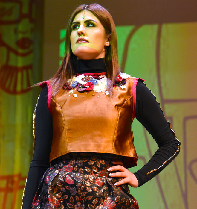 Indulge in the versatile Monika Vest! Created with 100% silk, adorned with handmade appliquéd flowers, sparkling Swarovski crystals, and a metal centre back zipper, the A-line silhouette is juxtaposed with fitted princess seams and finished with pink trim at the neck and armholes. Layer the Monika Vest in the fall/winter season with your favourite long sleeve top and go sleeveless in the summer/spring.