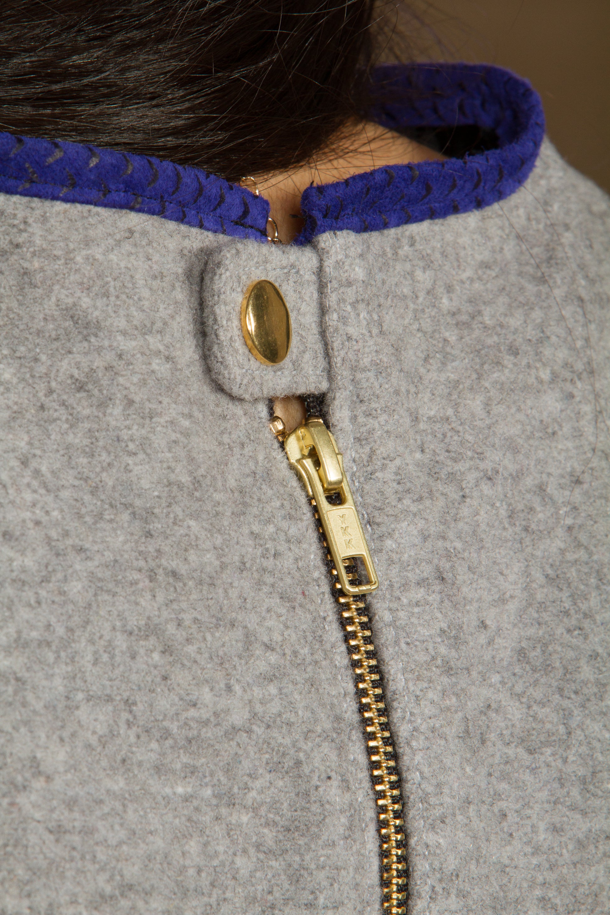 MATERIALS & CARE: 100% cashmere wool, genuine leather, metal zipper and snap. Professionally clean only.